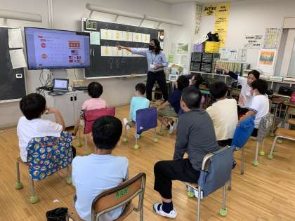 5/31 外国語 くすのき学級 公開日 2023/05/31 更新日 2023/05/31 できごと 今日は数字について学習しました。 数字の歌を歌ったり、「How many〜?」と訪ねてボールの数を数えたりしました。 また、友達とじゃんけんをして、勝った回数、負けた回数、引き分けになった回数を英語で数えました。 楽しい活動を通して英語に親しみました。 いいね(0)