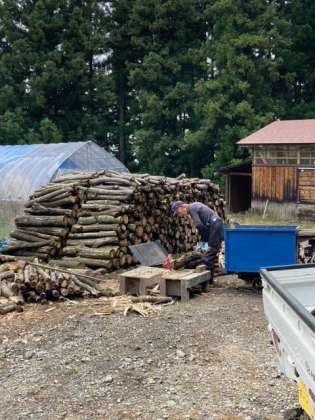 薪割りを機械でやっている所を初めて見ました。貴重な場面です。