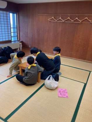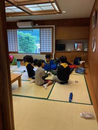 飯盒炊爨の前に、お部屋でトランプ遊びです。 荷物の整理整頓もできました。