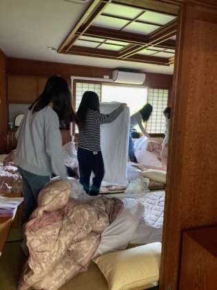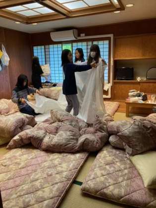 昨夜は、遅くまでコソコソ声が聞こえてる部屋もありましたが、眠れたかな。朝のうちにできる仕事をしています。