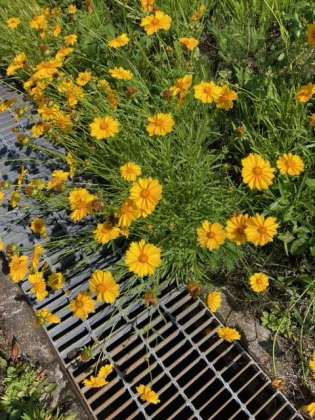 雨上がりで、植物がキラキラしています。