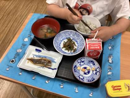 6/14 和食器体験 きはだ学級 公開日 2023/06/14 更新日 2023/06/14 できごと 昨日は和食器体験出前授業を受け、今日は給食を和食器でいただきました。「戦国時代みたい。」「お皿に描いてある絵は何かな。」と、いつもと違う雰囲気にわくわくしている様子が見られました。 いいね(0)