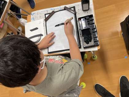 5・6時間目に書写の毛筆の学習をしました。3・4年生は横画の練習で「二」を書きました。3年生は初めての、4年生も久々の毛筆なので道具の置き方や筆の持ち方、姿勢など丁寧に確認しました。「トン、スー、トン」を合言葉に頑張りました。
