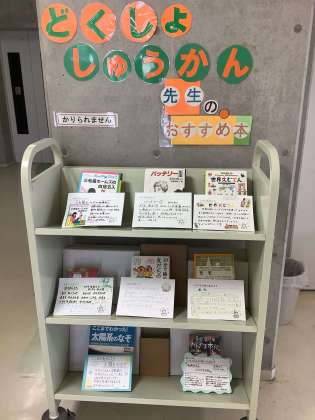 ふれあいルーム、図書室には先生からのおすすめの本が紹介されています。