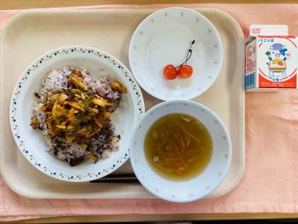 雑穀ごはんに、旬の夏野菜を使ったかき揚げをのせて食べる、