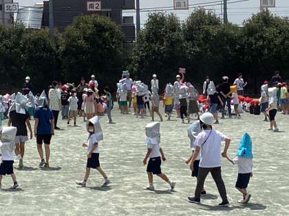 校長先生からも「何かが落ちてくるかもしれない。崩れてくるかもしれない。危険だと思われるものからは離れ、自分の頭を守る必要がある」との話がありました。