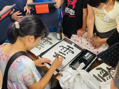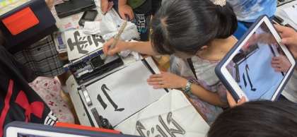 先生がお手本をかいたときには、みんな興味津々でした。