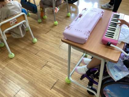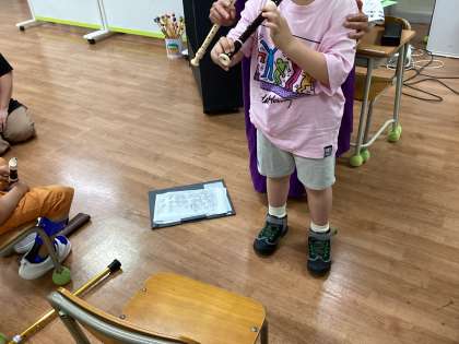 音楽で鍵盤ハーモニカやリコーダー、鉄琴の練習をしました。きれいな音が出るように、音をよく聞いて指を動かしました。最後はバスマスターも使って「きらきら星」を合奏しました。