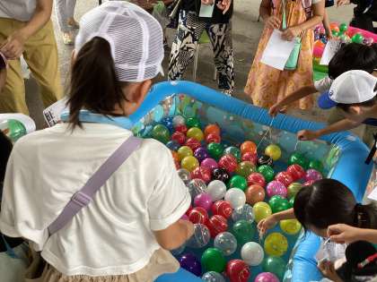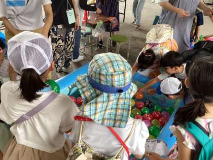 7/8 ヨーヨー釣り(子どもまつり) 公開日 2023/07/08 更新日 2023/07/08 できごと 正門入ってすぐの「くすのき前」では、ヨーヨー釣りが行われていました。 これこそ縁日の定番。 「どれを釣ろうかな?」色とりどりのヨーヨーを嬉しそうに釣っていました。 いいね(0)