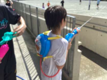 SSGの方々や友達同士で水を掛け合ったり、スプリンクラーの水を浴びたりして、暑い中でも涼を感じながら楽しむことができました。あっという間に1時間が経ってしまったようです。