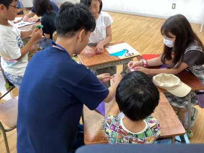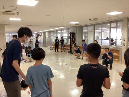 データの扱い方、見取り方の説明を受けた後、演習に入ります。飛行機を作り、飛ばし、飛距離の計測を行い、グループに分かれて分析を行いました。子供たちはデータのばらつきをグラフに表し、発表するなど、教わったことを十分に生かしていました。