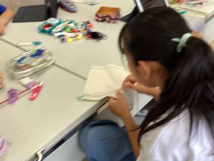 説明書やロイロノートに配布された画像を見ながら、刺繍糸を布に縫っていきます。