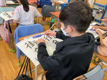 9/11 組み立てを考えて 6年生 公開日 2023/09/11 更新日 2023/09/11 できごと 今回の課題は「街角」。 三つの部分の組み合わせでできた漢字の 字形の整え方を考えます。 部分同士の位置や大きさの関係を意識して 書くことができました。 いいね(0)