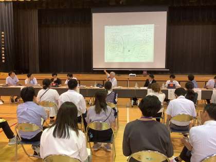 井出先生からは、指導者側の都合で場面や学習方法を固定化しないこと、学習活動が何のために行われるのかとその学習の学び方を明確に示すこと。大塚先生からは、児童の資質・能力を育成するうえでどのような姿を実現したいのか具体的にイメージすること、教科書「を」教えるのでなく教科書「で」教えること、といった内容でお話をいただきました。