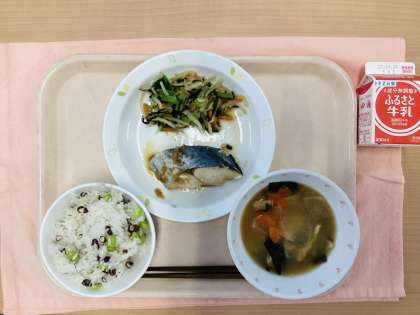 給食では、お米と小豆を一緒に炊いたごはんに枝豆を入れて、