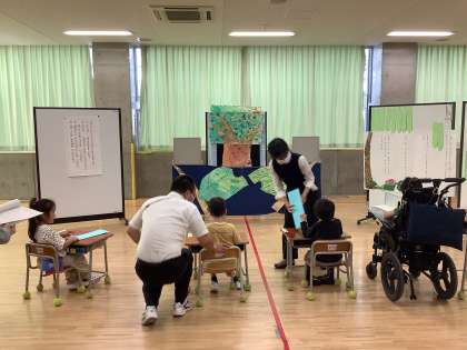 今日はきはだ学級1年生の国語「やくそく」の学習でした。物語の中盤をペープサートを用いて演じながら、あおむしの気持ちを考えました。ペアで演じ、指導者の実演例を観て、さらに自分たちで再び演じることで、おあむしの気持ちに迫りながら考えました。