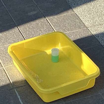 細かく砕いた入浴剤を水と共にフィルムケースに入れ、蓋をして準備完了。間もなく発射です。