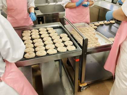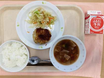 今日は給食室でハンバーグを手作りしました。
