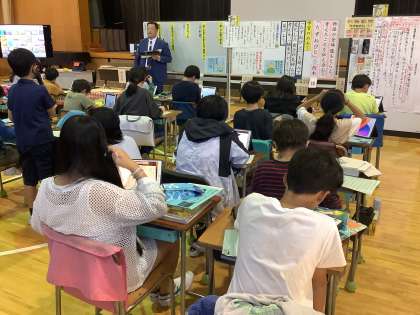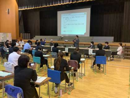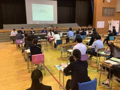 授業後、井出先生からは、交流活動を充実させるためのポイントとして目・耳・口(見る・聞く・話す)を全て働かせながら取り組むことや、第3者へのメッセージを書く際の表現の仕方。大塚先生からは、国語科として言語能力の育成をしていくために、指導事項は適切であるのかどうかを意識して授業をデザインしていくことの大切さをお話いただきました。