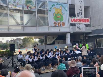 昨年度まではコロナ禍もあって正門前での演奏のみでしたが、今年度は久しぶりの本格開催となり、2日間の昼夜にわたり、計15団体が歌や楽器の演奏を披露します。松沢中学校の吹奏楽部の演奏もあります。