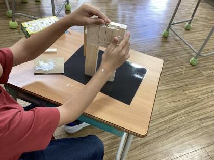 11/1 イメージを膨らませて きはだ学級 公開日 2023/11/01 更新日 2023/11/01 できごと 先週、木片を高く積み上げたり並べたりする活動をしました。 今週は、その活動からイメージを膨らませ、接着剤でくっつけて形を作りました。 最後は色を塗って完成させる予定です。 いいね(0)