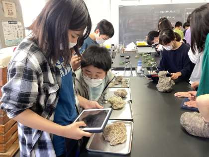 理科「大地のつくり」の学習をしています。