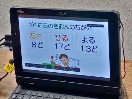 11/13 全校朝会(保健指導) 公開日 2023/11/13 更新日 2023/11/13 できごと 11月の保健目標は「衣服で体温の調節をしよう」です。 朝、昼、晩と一日の気温を見てみると、大きな違いがあることに気づきます。一日の中でも、気温に合わせた服装に変える必要があります。また外気温と室内温もだいぶ差があります。 衣服により体温を調節するためには、着脱しやすい服を選ぶのがよいですね。 今日の朝会では先生方が登場したクイズを通して、分かりやすく学ぶことができました。 いいね(0)