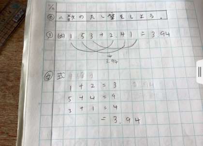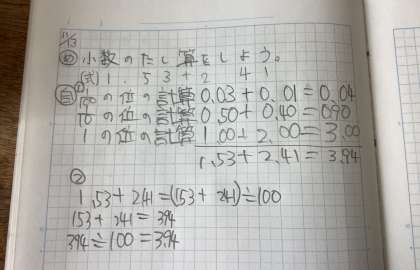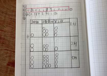 小数のたし算のやり方はどんな方法があるか皆で考えました。