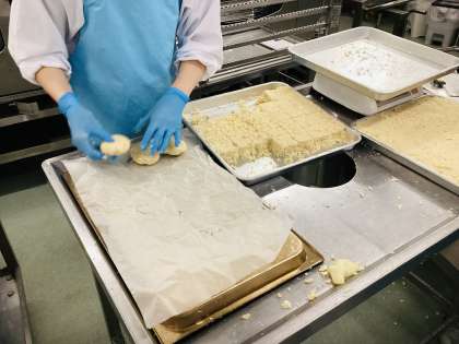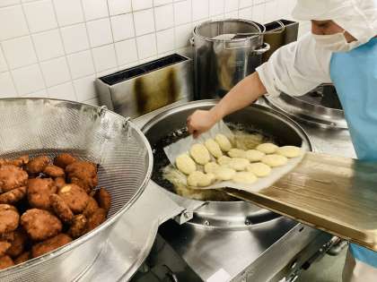 今日は、ゼリーフライに、大豆からできた「おから」を使っています。