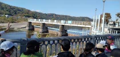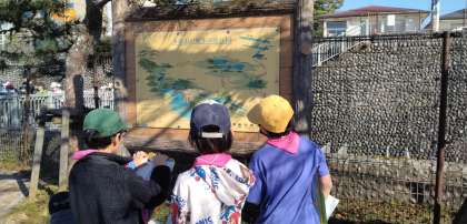 江戸の人々の水不足を解決させた玉川兄弟の偉業を讃えた銅像にも子供たちは興奮しています。