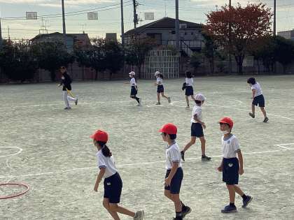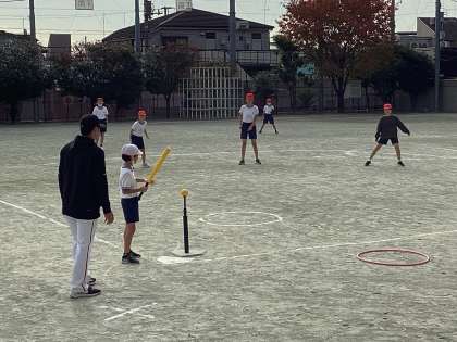 今日と明日の2日間、東京読売ジャイアンツから講師を招いて、5年生がTボールの授業を行います。
