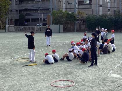 バットの握り方や振り方を教えてもらった後には、今日行うゲームの説明がありました。