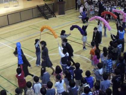 10人の先生方が離任式に出席して下さいました。代表児童がお世話になった先生にお礼のお手紙を読みました。最後は児童の間を通ってお別れをしました。