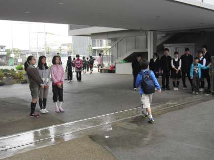 正門や西門前で、登校してくる児童に6年生の代表児童が元気よく「おはようござます。」のあいさつをしています。地域の方も参加して下さいました。そして今回も赤松学舎の松沢中学校から中学生のお兄さん、お姉さんも一緒にあいさつ運動に参加しました。