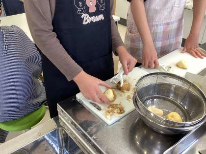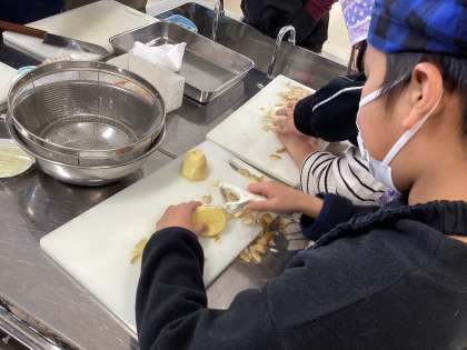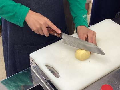北海道の中川町からいただいたじゃがいもを使って、ジャーマンポテト作りに取り組みました。