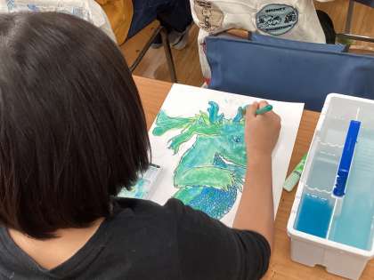 12/14 想像してごらん 3年生 公開日 2023/12/14 更新日 2023/12/14 できごと 来年の干支、どんな竜を想像しますか? 鉛筆で下書きをして、ネームペンでなぞり、水を多く使った絵の具で塗ります。どんな竜が描けるかな。 いいね(0)