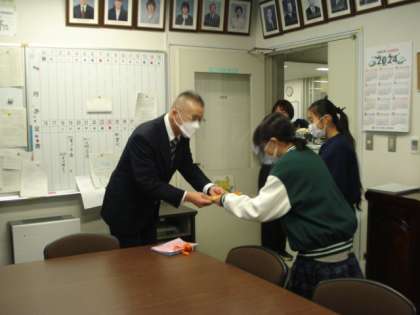 12/19 中川町の方々にお礼のお手紙 公開日 2023/12/19 更新日 2023/12/19 できごと 12月18日、北海道中川町の教育委員会の方々が本校にいらっしゃいました。先月、中川町からは、ジャガイモとカボチャをいただいており、給食や調理実習でおいしくいただきました。給食委員会の6年生から中川町の教育長先生にお礼のお手紙を渡しました。 今後も、中川町とは交流を続けていきたいと思っています。 いいね(0)