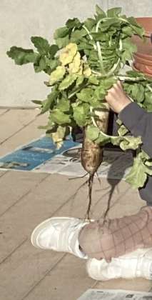 1/13 大根の収穫 きはだ学級 公開日 2024/01/13 更新日 2024/01/13 できごと 2学期から育ててきた野菜の収穫の時期を迎え、3年生が大蔵大根を収穫しました。大根をしっかり持って、折らないように真上に引き抜きました。立派に育っていてびっくりしました。 いいね(0)