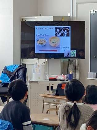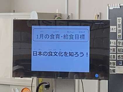 1/22 全校朝会(食育指導) 公開日 2024/01/22 更新日 2024/01/22 できごと 1月の食育目標は「日本の食文化を知ろう」です。 学校給食の始まりから、給食の変遷まで教えてもらいました。 学校給食の目的は、栄養補給のみならず、給食を生きた教材として、食を通して学ぶことにあります。1月24日から30日は全国学校給食週間です。日本の食文化を学んでいきましょう。 いいね(0)