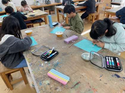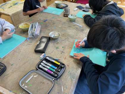 1/24 図工 ほって表すふしぎな生き物 4年生