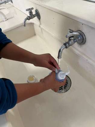 保健委員会の子供たちが委員会活動で、ハンドソープの中身の入れ替えを一生懸命してくれました。
