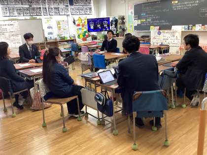 松沢中、赤堤小、松沢小の3校の教員が集まり、授業参観や情報交換を行いました。