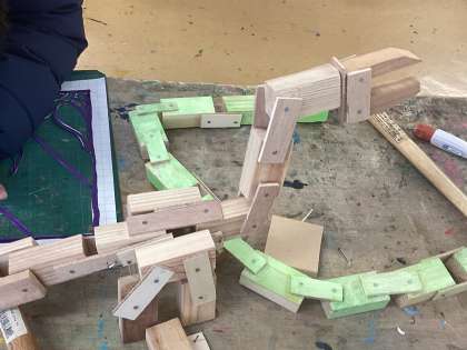 2/14 トントンつないで 4年生 公開日 2024/02/14 更新日 2024/02/14 できごと 角材をトントン、トントン、釘でつないでいきます。 どんな形、どんな生き物になるかは、角材のつなぎ方次第です。 いいね(0)