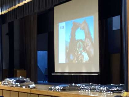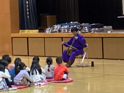 2/15 馬頭琴奏者ウルグンさんを迎えて 2年生 公開日 2024/02/15 更新日 2024/02/15 できごと 馬頭琴奏者ウルグンさんを迎えての出前授業です。 国語で学習した「スーホの白い馬」に登場する馬頭琴を見せていただき、曲も聴かせていただきました。曲調が途中で変わり、速いテンポの曲調のときには、実際に馬が走っているときを感じさせるようでした。スーホが暮らしたであろう草原や暮らしぶりの画像も見せていただくことができました。 いいね(0)
