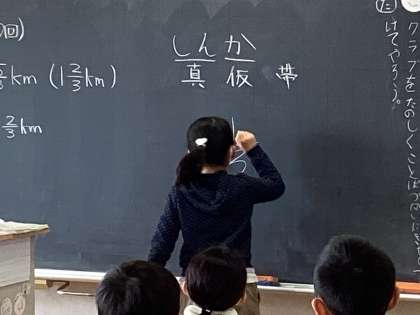 2/21分数の大きさ 4年生 公開日 2024/02/21 更新日 2024/02/21 できごと 「真分数、仮分数、帯分数」 提示された分数がどれにあたるのかを答えます。 子供たちの反射神経はさすがです。黒板に分数を書くと即座に答えらえる子供がたくさんいました。 いいね(0)
