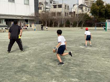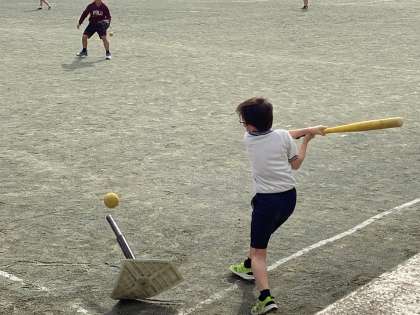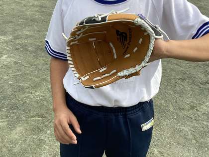 ティーボールクラブの子供たちが大谷グローブを使って活動を行いました。