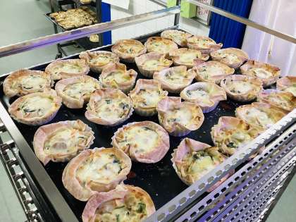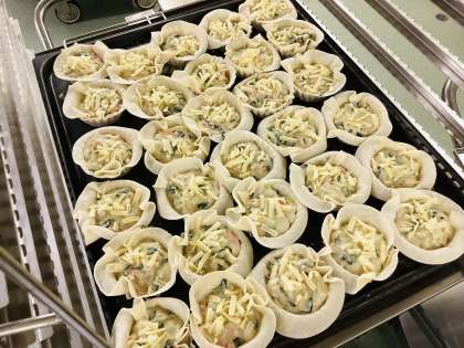 キッシュは、ぎょうざの皮を使って、パイ生地に見立てています。