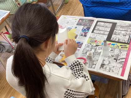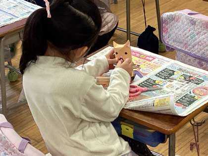 色画用紙を折ったり、切ったり、丸めたりして、自立式の動物や虫、魚、鳥などの生き物を作りました。かわいい作品がたくさんできましたよ。