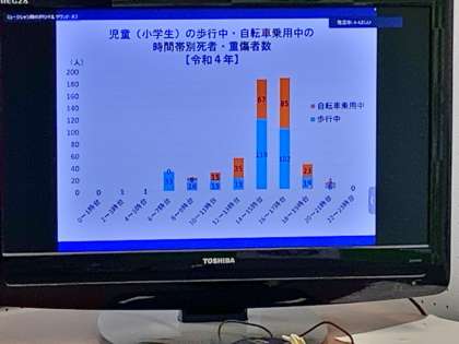特に交通安全についてです。自転車乗車中、自動車乗車中にヘルメットやシートベルトを着用しないと、どれだけ危険なのかをグラフを見ながら学びました。