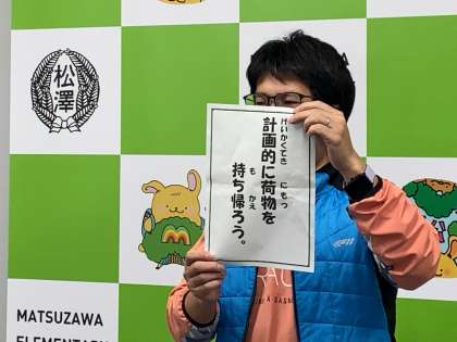 3/11 全校朝会(今週の目標) 公開日 2024/03/11 更新日 2024/03/11 できごと 今週の目標は「計画的に荷物を持ち帰ろう」です。 学校に来る日も数えるとあと9日。 そろそろ1年間の学習が終了する教科も出てきます。 授業で使わなくなった用具はすぐに持ち帰るようしましょう。 いいね(0)